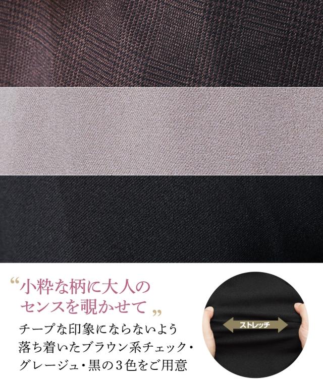 スカート セミフレア セットアップ対応 洗える ウール調 8L 上下別売スーツ 冬 グレージュ/ブラウン系チェック/黒 オフィス ビジネス コーディネート 大きいサイズ レディース ニッセン nissen