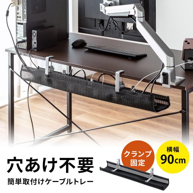 ケーブルトレー 幅90cm クランプ固定 メッシュタイプ ケーブルオーガナイザー ケーブル収納 配線受け 電源タップ ブラック[200-CT004BK]