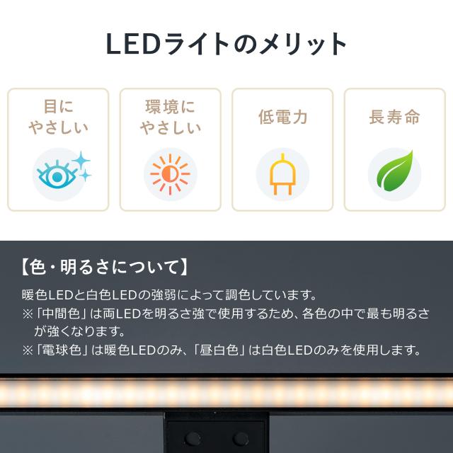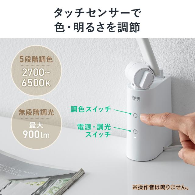 デスクライト LED クランプ式 暖色 コンセント 900ルーメン 無段階調光 3関節[800-LED060]