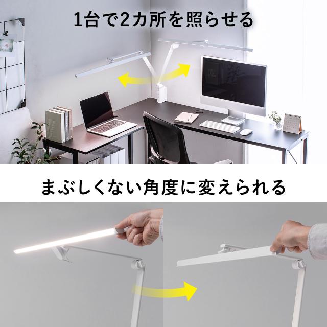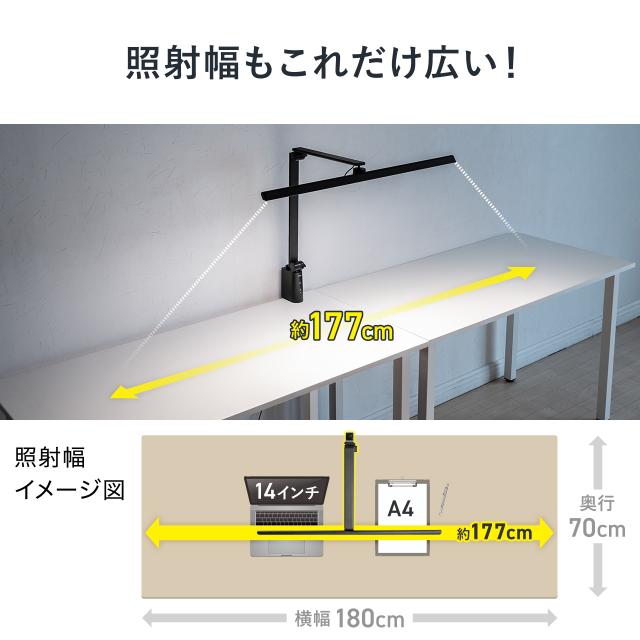 ●集中ブースなどに使用可能なT字型のクランプ固定式デスクライトLEDです。●LED幅は、約77cmとワイドサイズしっかりとデスクを照らします。