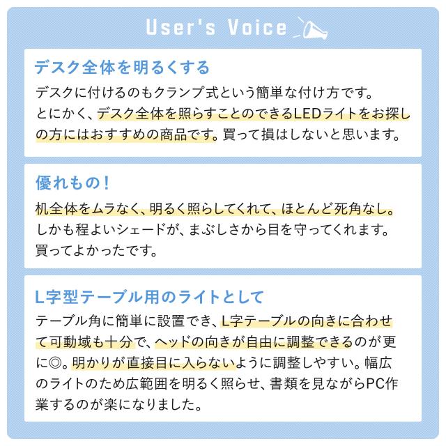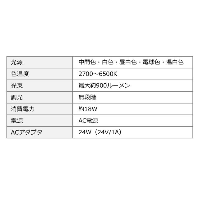 ⇒ご購入の前にご確認下さいクランプ取り付けで、机に挟み込んで設置。ロングアームを採用し、デスクライト光源LED部も長く、広範囲に明るく照らすことが可能。900ルーメンで色温度も光源も無段階で調整可能。3関節のクランプLEDライト。【WEB限定商品】