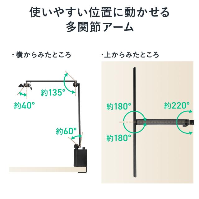 ●アームは3関節で、手元や必要な場所にLEDを動かして明るさ範囲を変えることができます。