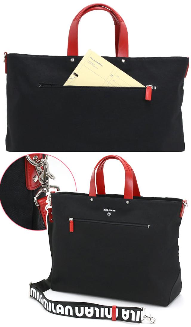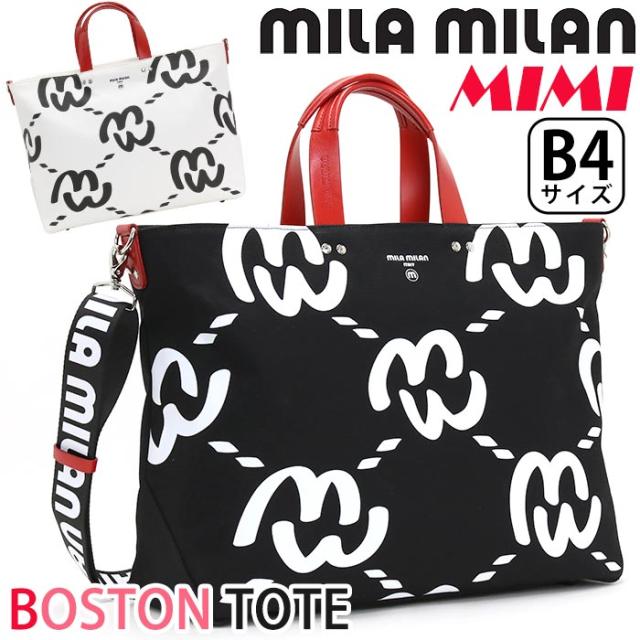 ミラミラン トートボストン mila milan メンズ レディース MIMI ミミ ボストンバッグ 2way トート ショルダーバッグ 手持ち 肩掛け 手提げ男女兼用 きれいめ シンプル 大人 ゴルフ タウン カジュアル スポーティー ブラック A4 B4 軽量 デイリー 通勤 お出かけ 散歩 259712
