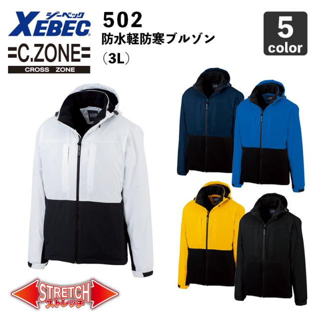 ジーベック 防水軽防寒ブルゾン 502(3L) / ストレッチ / 撥水加工 / 透湿防水性 / 作業服 / 作業着 / XEBEC / 現場服