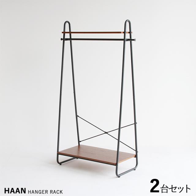 HAAN-HR ハーン ハンガーラック【2台セット】 ブラック&ナチュラル色 スチールフレーム 天然木棚 スリムタイプ バッグフック 組立て商品 コートハンガー幅90×奥行き40×高さ151cm