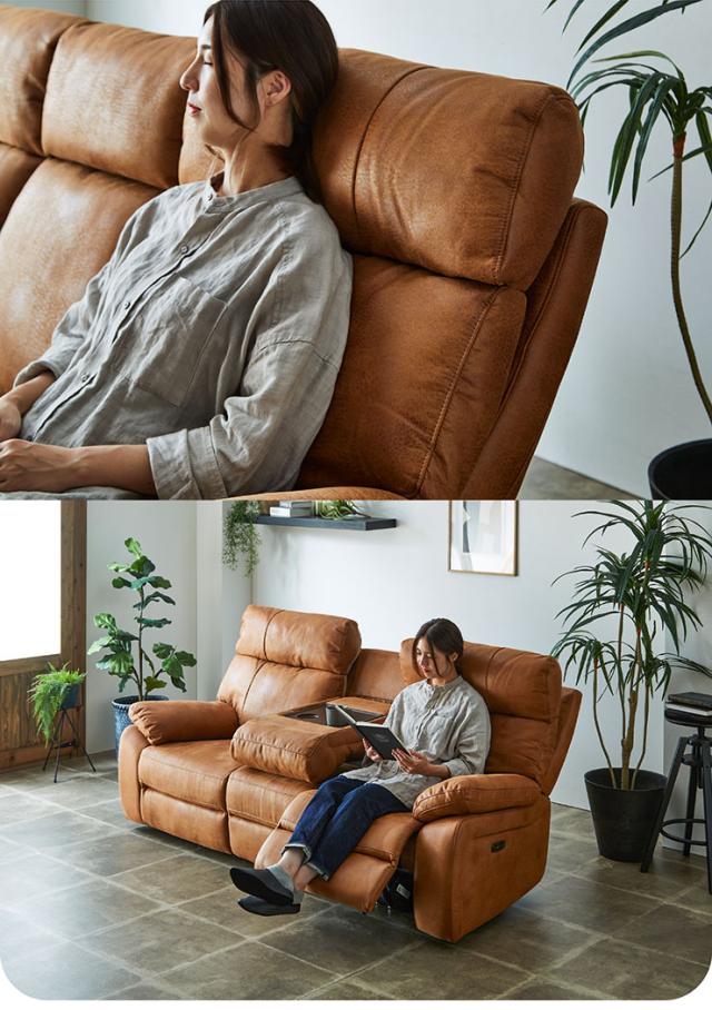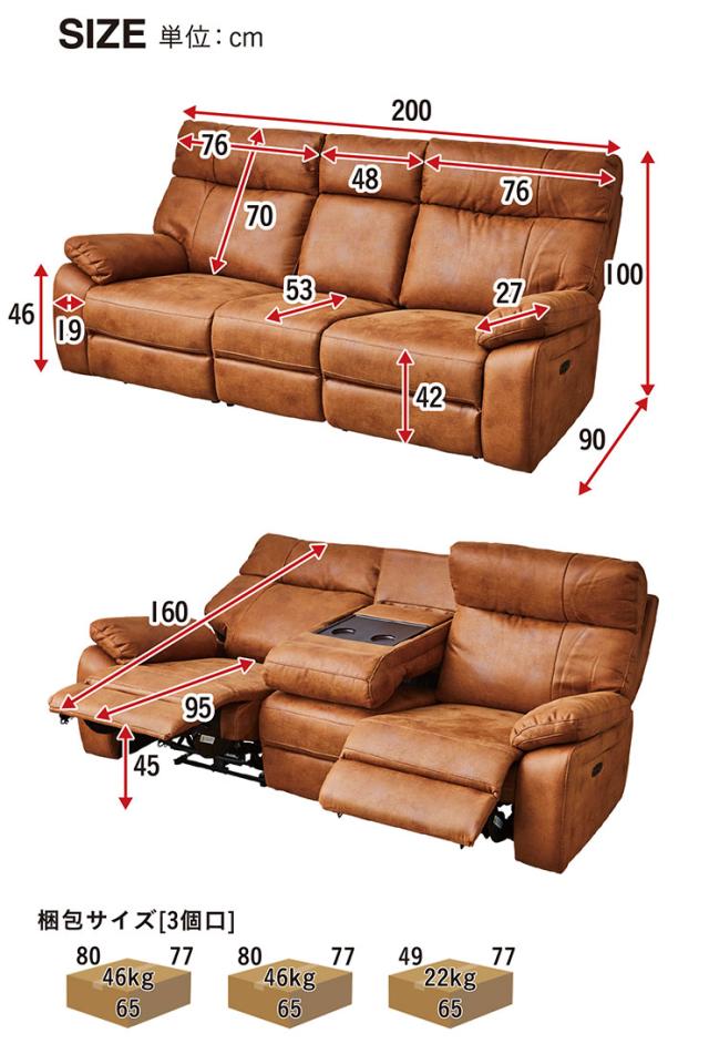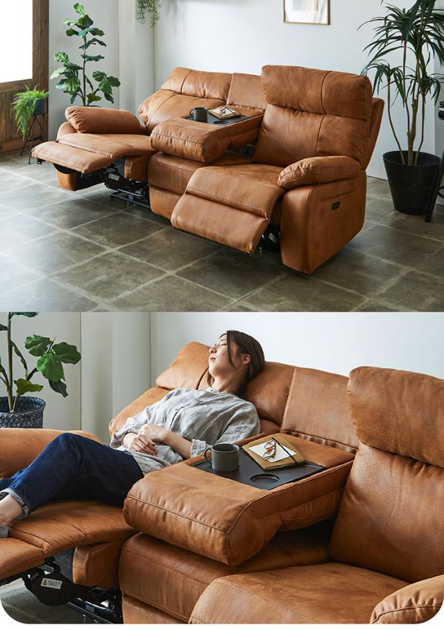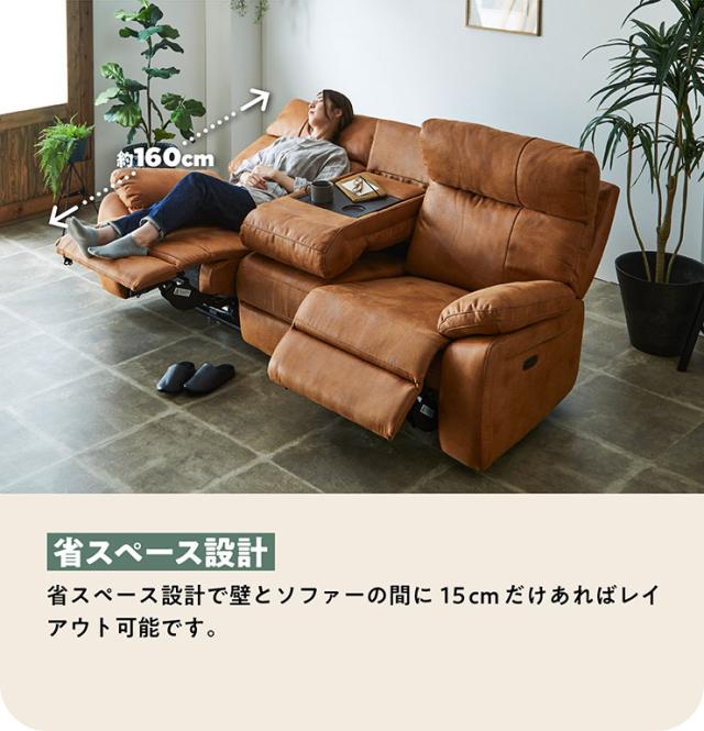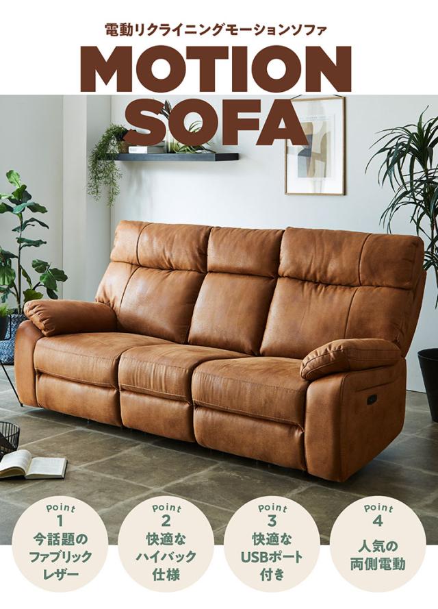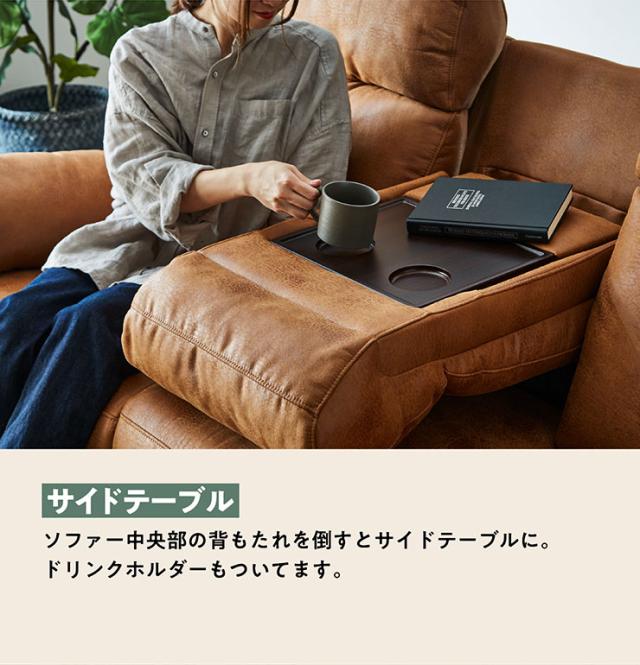 【搬入・組立設置付き】電動モーションリクライニングソファ サイドテーブル付き 3人掛け 幅200cm USBポート付き 3人掛けソファー 三人掛けソファー ハイバックソファ ファブリックレザー シンプル 撥水 肘あり