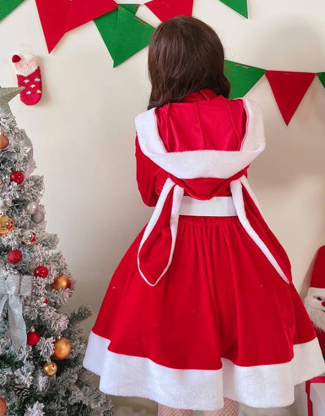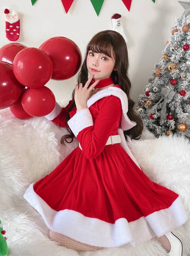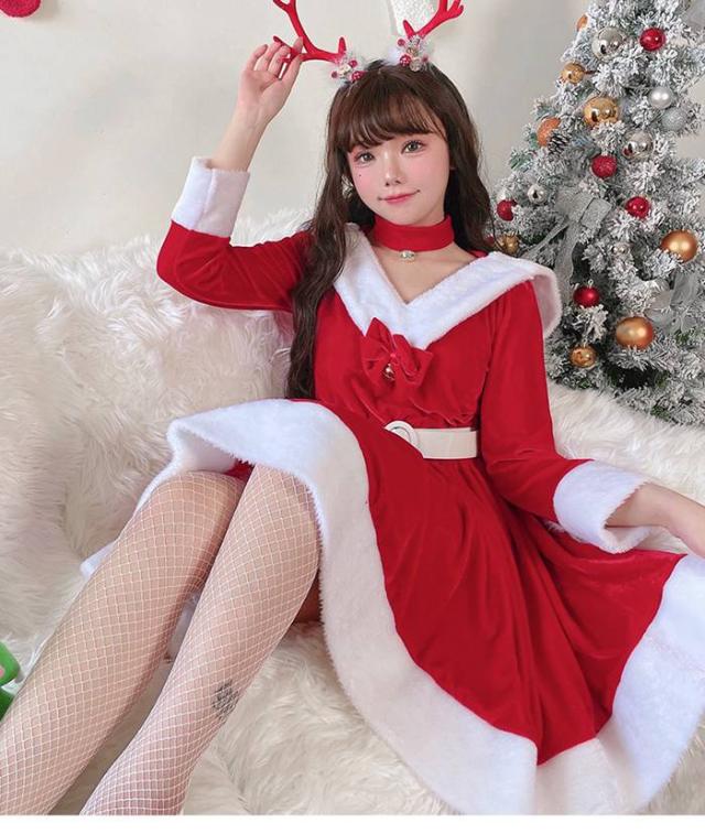 クリスマス コスプレ ワンピース+ベルト+首飾り+胸元飾りの蝶結び(※他は商品に含まれません) shengdan00004 | ||||||||