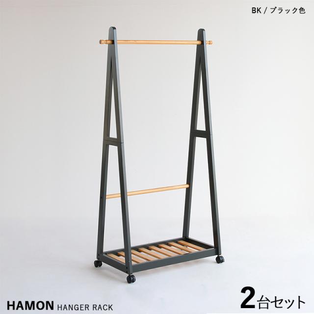 HAMON-HR ハモン ハンガーラック【2台セット】 ブラック&ナチュラル色 パイン材 無垢 キャスター付 スリムタイプ 組立商品 コートハンガー 幅85×奥行き39.5×高さ150cm