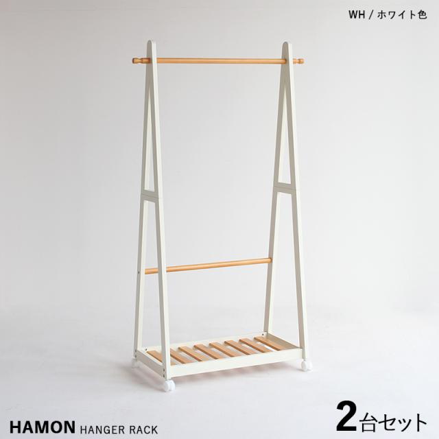 HAMON-HR ハモン ハンガーラック【2台セット】 ホワイト&ナチュラル色 パイン材 無垢 キャスター付 スリムタイプ 組立商品 コートハンガー 幅85×奥行き39.5×高さ150cm