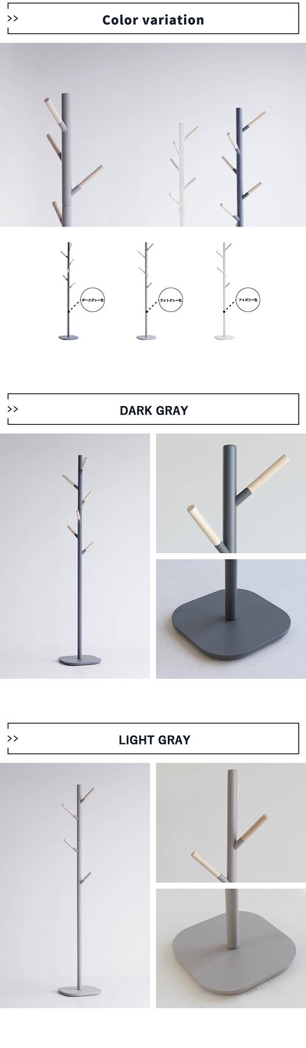 可愛らしさとスタイリッシュをミックスした北欧テイストあふれるシンプルコートハンガー。優しい配色のアイボリー色、淡いライト グレー色とシックなダークグレー色の3色。