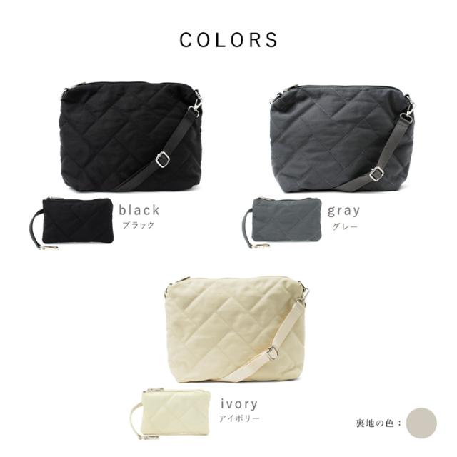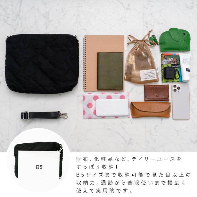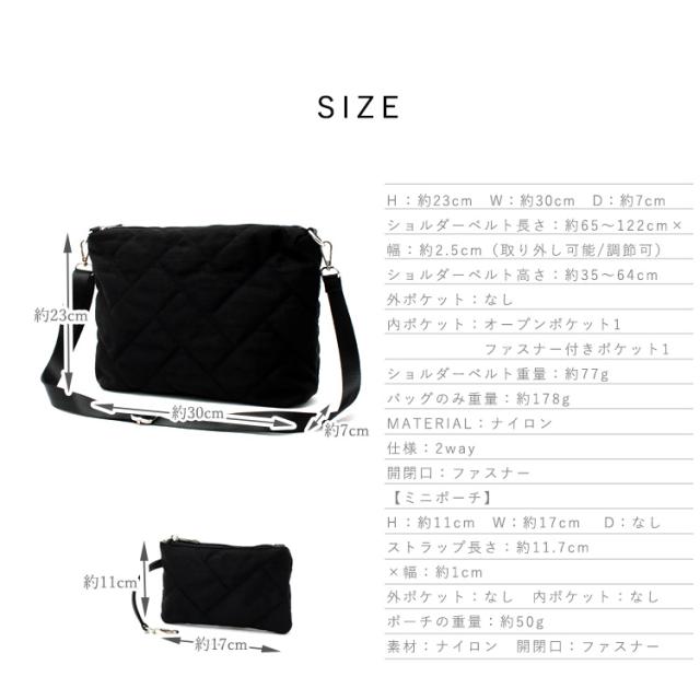 ポーチ付きキルティングナイロンショルダー