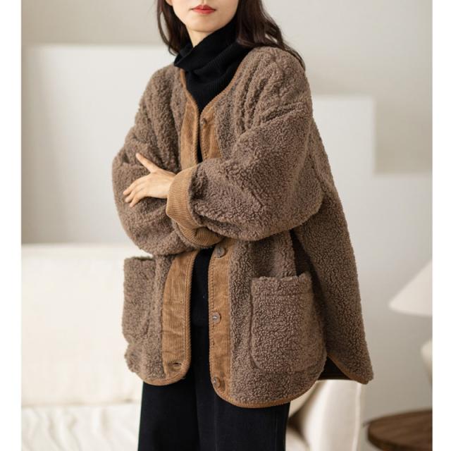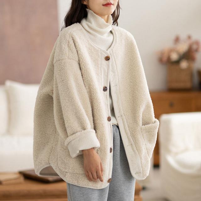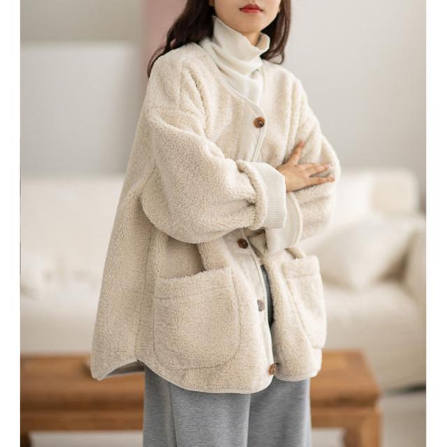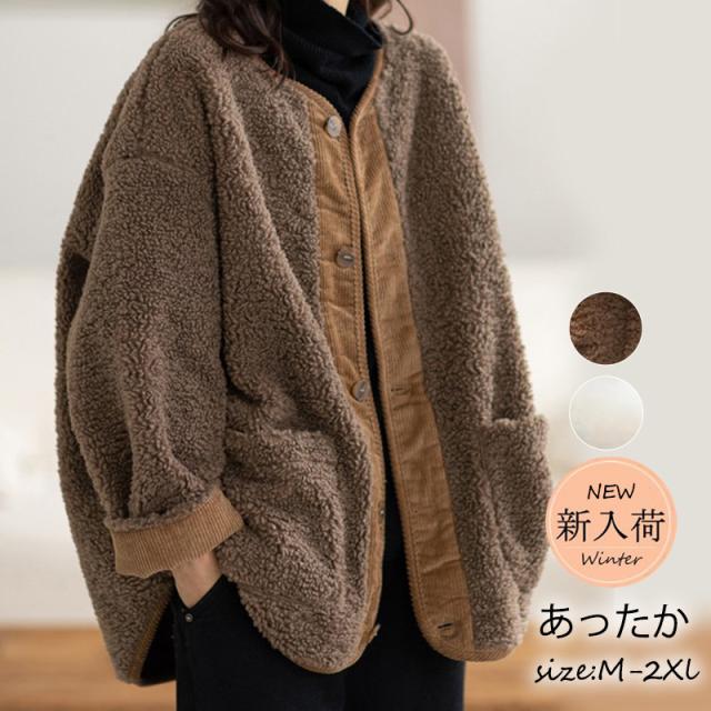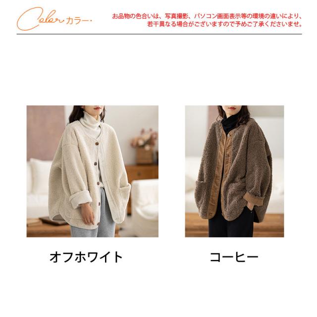 フリースジャケット レディース ボア ブルゾン アウター もこもこ ゆったり 羽織り 大きいサイズ 厚手 無地 暖か 防寒 冬 通