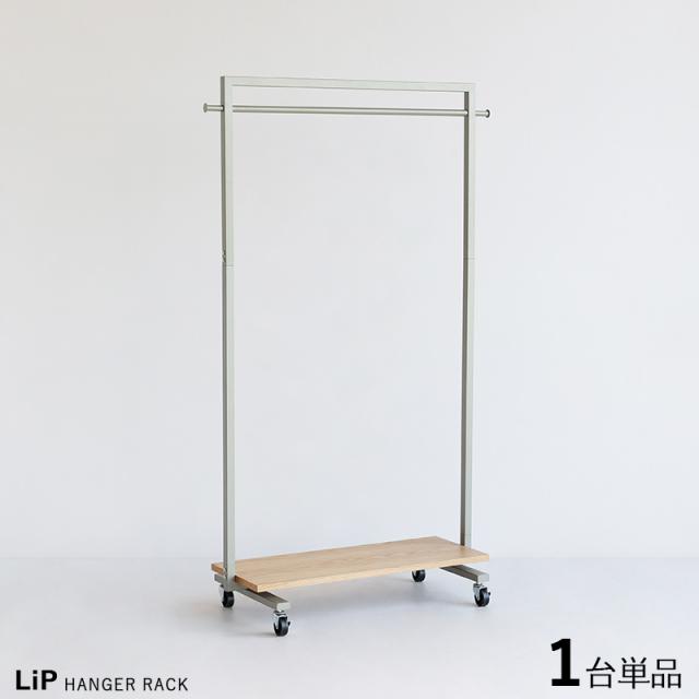 Lip-HR リップ ハンガーラック【1台単品】 シルバースチールフレーム 天然木棚板 キャスター付 スリムタイプ 組立商品 コートハンガー 幅90×奥行き40×高さ150cm
