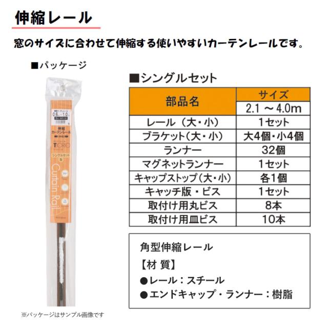- 角型レール、伸縮幅2.1〜4.0mのシングルセット。