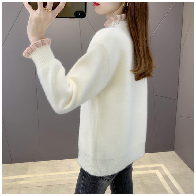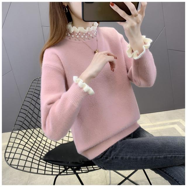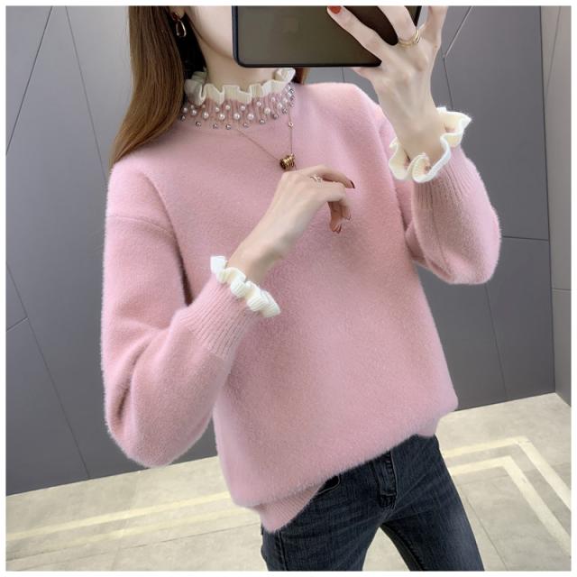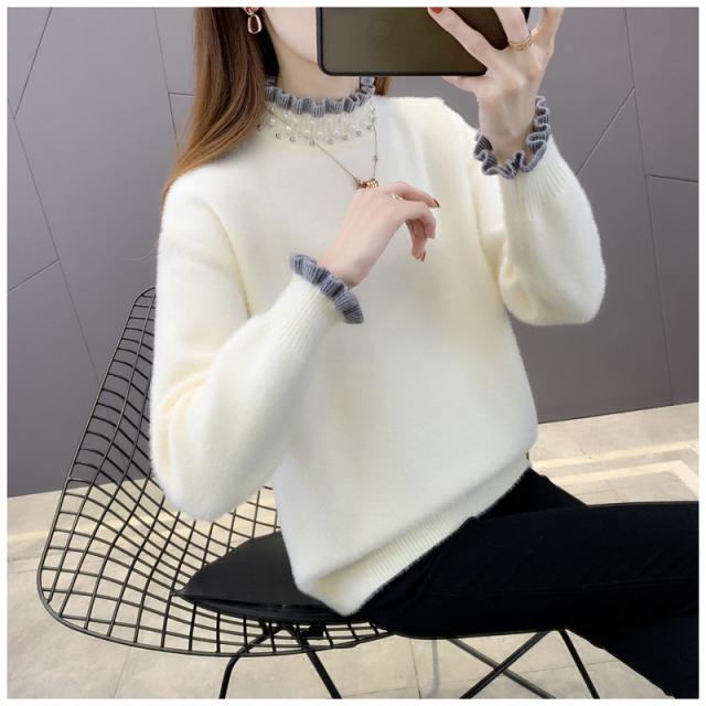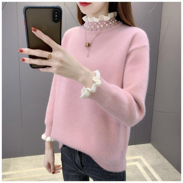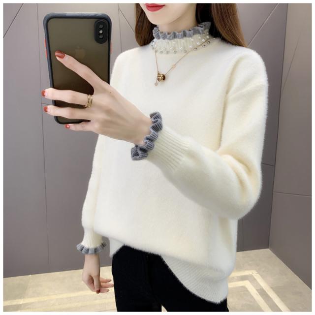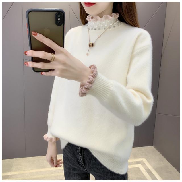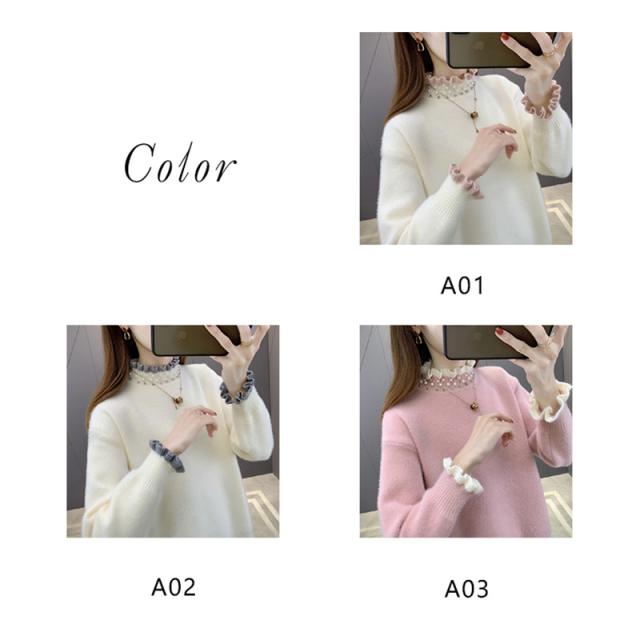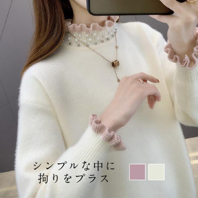 ニットセーター レディース タートルネック 秋冬 ニットトップス 長袖 セーター 無地 フレアパール襟 ゆったり プルオーバー イ
