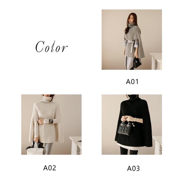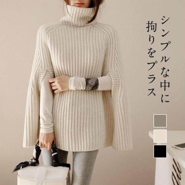 ニットセーター レディース タートルネック 秋冬 ニット トップス ベスト マント ドルマンニット ニットベスト ノースリーブ リ