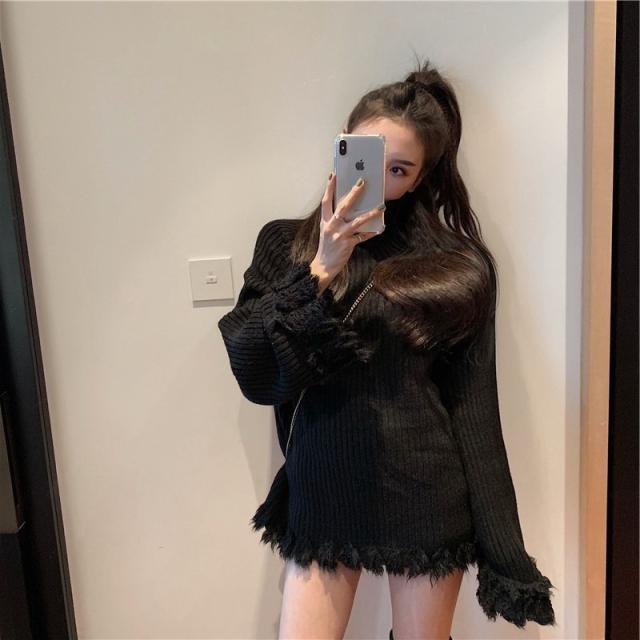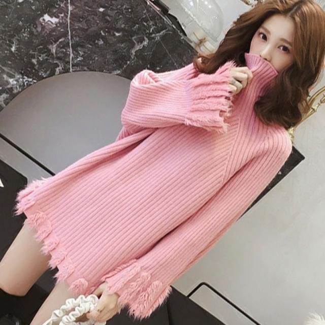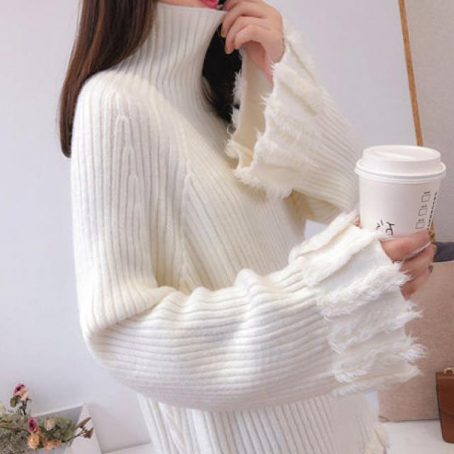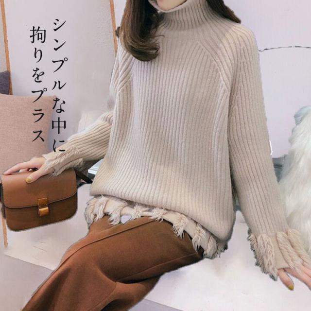 ニットセーター レディース タートルネック 秋冬 フリンジ プルオーバー トップス セーター 着痩せ ファッション カジユアル