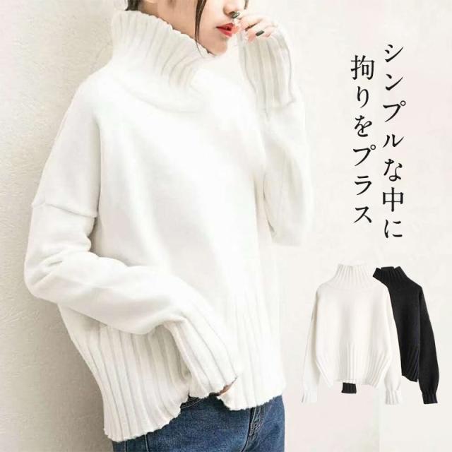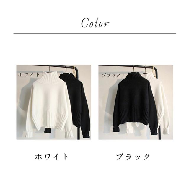 ニットセーター レディース タートルネック 秋冬 ニット カットソー セーター プルオーバー 長袖 ハイネック ショート丈 暖かい
