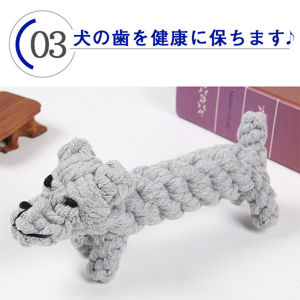 ★ 粗いコットンの繊維がわんちゃんの歯の表面の汚れを取る効果を期待できるドッグトイです♪