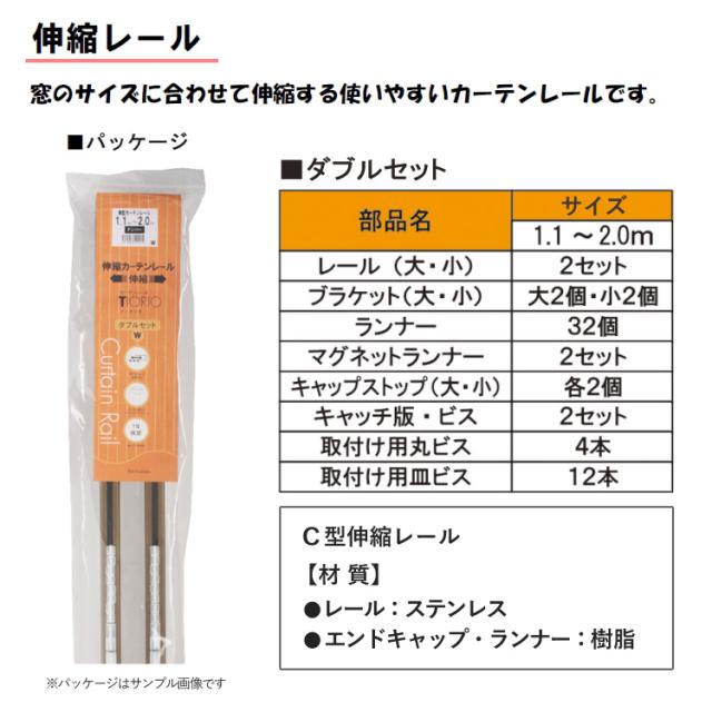 - C型レール、伸縮幅1.1〜2.0mのダブルセット。