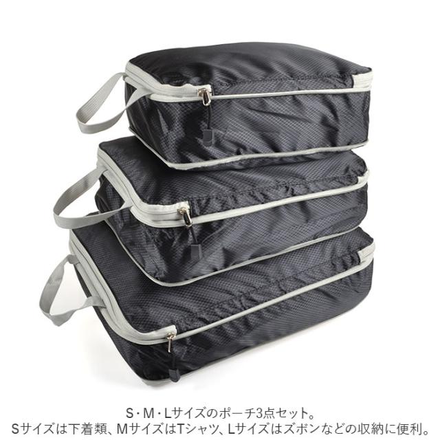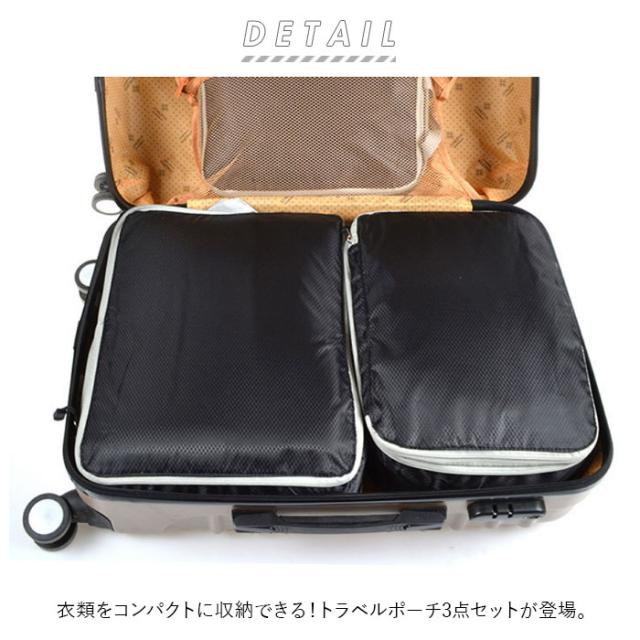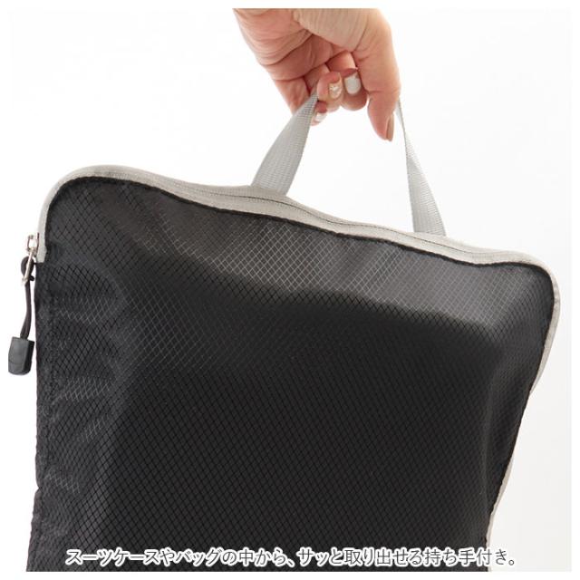 | 商品説明 | ・衣類をコンパクトに収納できる!トラベルポーチ3点セットが登場。 ・S・M・Lサイズのポーチ3点セット。Sサイズは下着類、MサイズはTシャツ、Lサイズはズボンなどの収納に便利。 ・開口部はラウンドファスナー式。ガバッと大きく開いて、出し入れがラクラク◎ ・衣類や下着を収納し、全てのファスナーを閉めるだけで、厚みが半分程度にまで圧縮! ・中身が見えない素材なので安心◎ ・汚れや水を弾く、撥水加工済み。 ・スーツケースやバッグの中から、サッと取り出せる持ち手付き。 ・パッキングの際に荷物が入り切らない・・・そんな悩みを解決してくれる便利アイテム♪ |