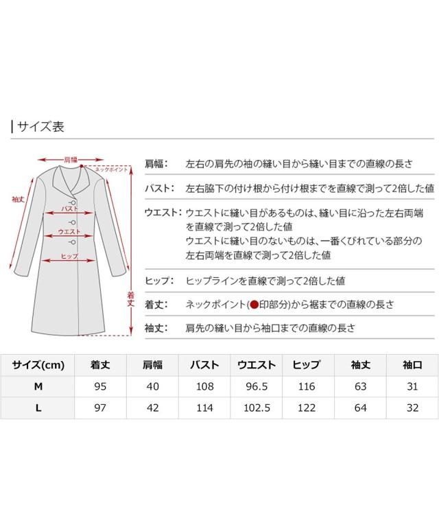 M/着丈95|肩幅40|身幅54|ウエスト幅48.25|ヒップ116|袖丈63|袖口31