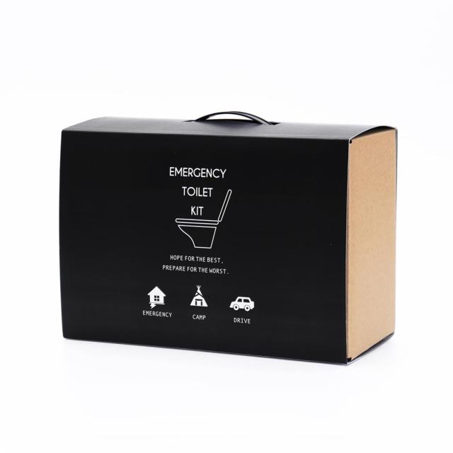 最善を祈り、最悪に備える!”防災用品に見えない”見た目もおしゃれな「緊急用トイレキット10個セット ダンボール製簡易トイレ付き」が新発売!トイレに備えるだけでインテリアに見える!緊急時のトイレ処理が可能な、簡易トイレ10回セット。ダンボール製簡易トイレ袋をセットし、抗菌性凝固剤を振りかけてから用を足すだけ!素早く固めてたっぷり吸収、消臭効果もばっちり!後処理は可燃ごみとして処分が可能。見える場所に保管しておいても違和感のないパッケージ♪取っ手付きで、持ち運びがラクチン。・10年間保存可能な信頼の日本製。災害時の断水に備えてストックしておけば安心◎・【セット内容】抗菌性凝固剤×10個、排泄袋(PE製)×10枚、トイレ本体×1個