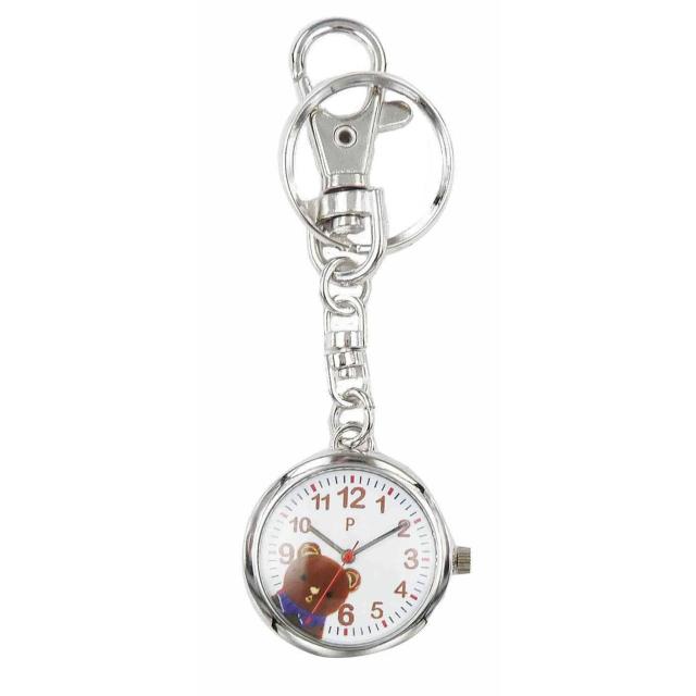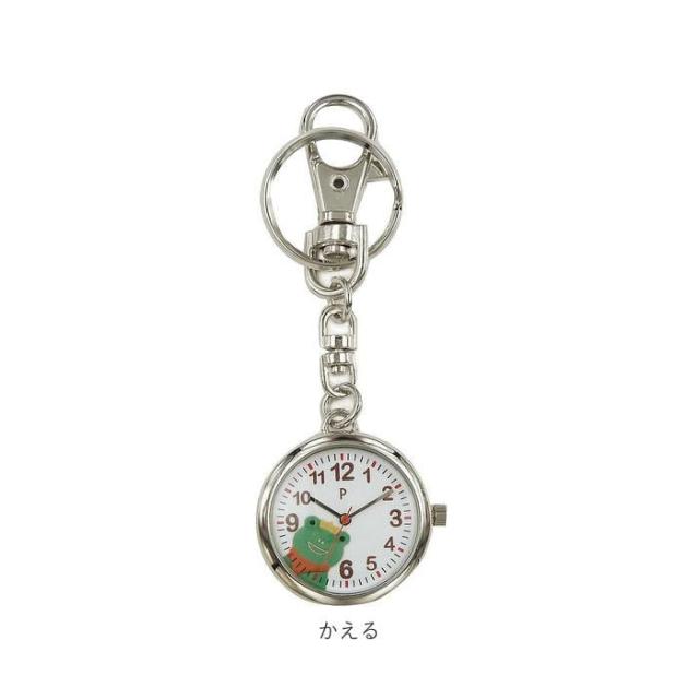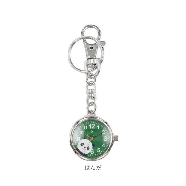 丸いフォルムに動物のフェイスデザインが特徴的な「アニマルキーリングウォッチ」が登場♪角のとれたまんまるフォルムがやさしい印象。シンプルで見やすい文字盤とちょこんと動物が覗いてるフェイスデザインがちょうどいい可愛さ♪カラビナの付いたキーホルダータイプだから、バッグやランドセルに簡単に装着が可能!お子さまの登下校時のご使用にぴったり♪また、ベルトループなどに引っ掛けて使うこともできるので、腕時計の着用がNGなお仕事にもおススメ♪ホルダー部分には、鍵などを装着できるリング付き。