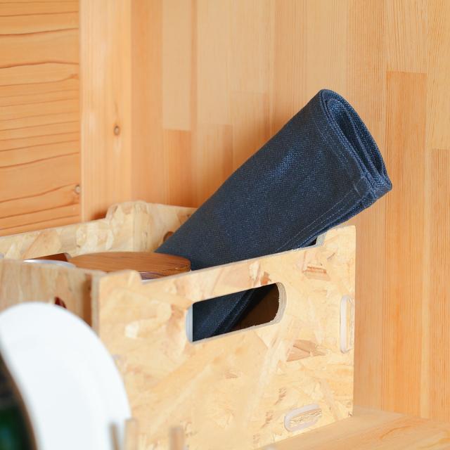 同じシリーズの水切りバットにピッタリなサイズ感です。一緒に使用すれば、スッキリと食器の水切りができます。また、コップスタンドやまな板スタンドなどを組み合わせてリネンライナーの上で水切りするのもおすすめです。