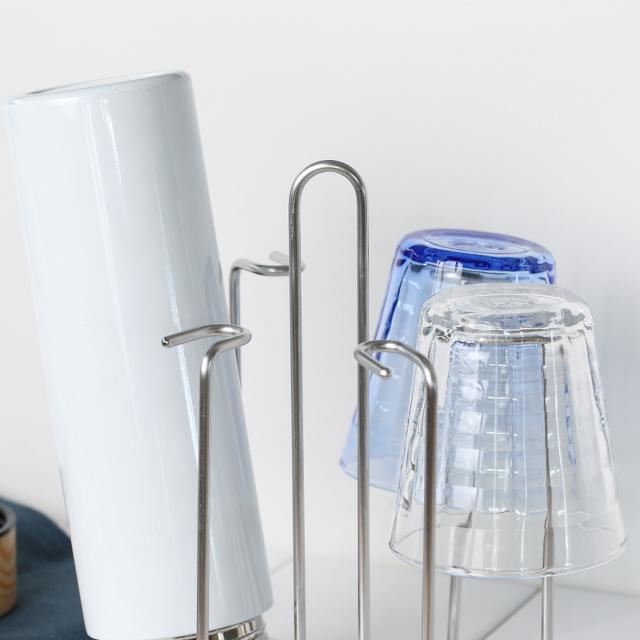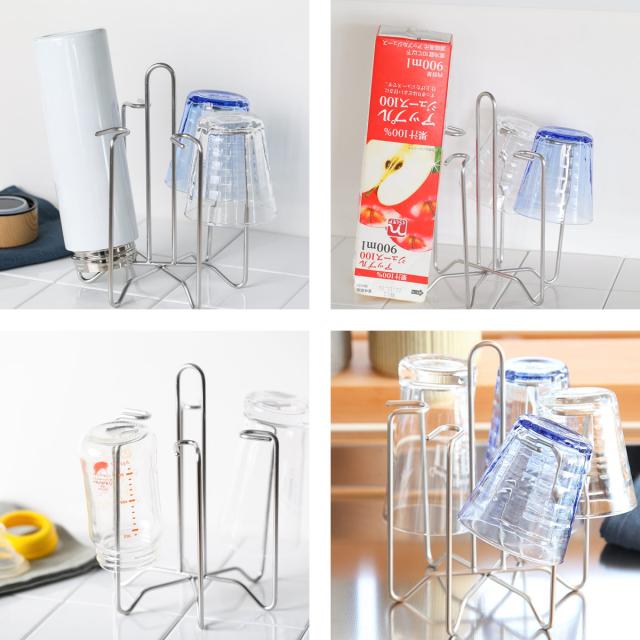 高さのあるグラスはもちろん、色々な物を掛けることができます。水筒や牛乳パック、哺乳瓶など、逆さまにして乾かすのが難しい物でも簡単に乾かせるので便利です。