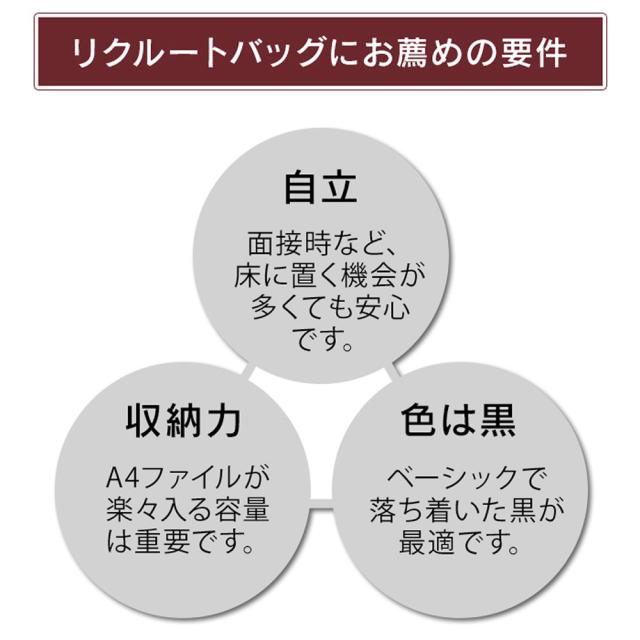 ◆ ベーシックな色と、落ち着いたデザインは、就職活動を終えた後の通勤にも、長く使っていただけます。