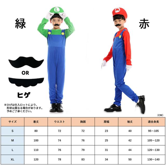 子供用 仮装 帽子 衣装、ヒゲ、 コスプレ キャラクター衣装 イベント 必需アイテム SNS映え 3点セット なりきり ハロウィン Halloween ハロウィン コスプレ パーティー グッズ 仮装 変装 衣装 用品 個性的 変身 なりきり ごっご遊び 80cm 100cm 110cm キャラクター スーパーマリオ ブラザーズ ルイージ 誕生日 プレゼント 子供用 キッズ こども 子ども ボーイ