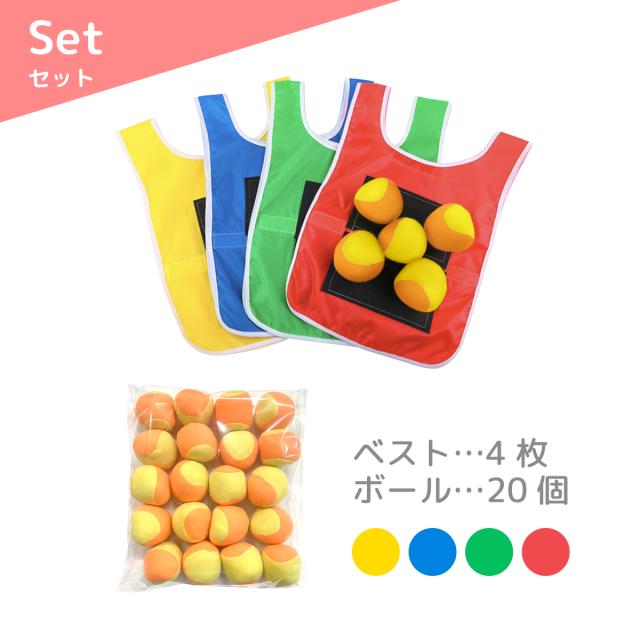ドッジボール ベスト ベスト4枚 ボール20個 キャッチボール 子供用 ボール当て 室外 遊び dodgeball-vest