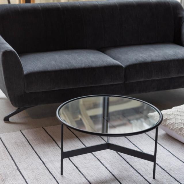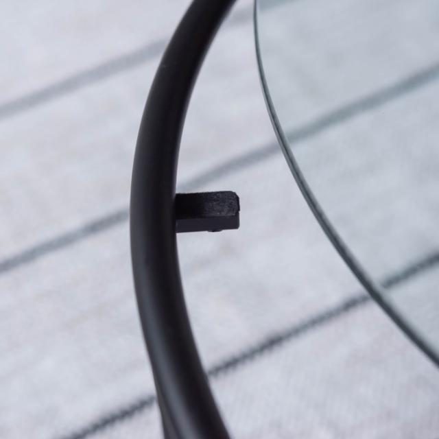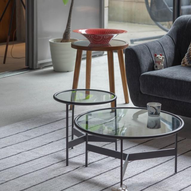 シンプルでスタイリッシュなガラステーブルマットなブラックアイアンの滑らかな曲線とハードなガラスを組み合わせた2サイズのローテーブル。リビングテーブル/サイドテーブルとして使用したり、2台並べてネストテーブルとしても使用できます。脚部は10mm角のシャープなラインが際立ち、透明なガラス天板との組み合わせは圧迫感の無い開放的な空間を演出します。