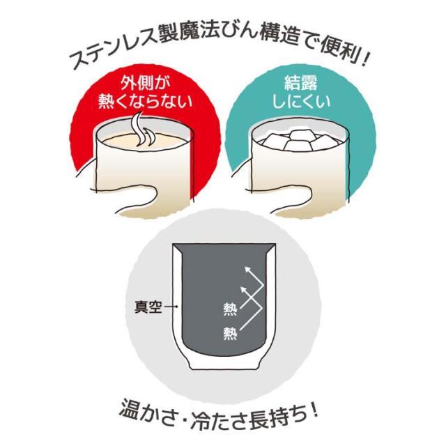 真空断熱構造で温かさが長持ちします。もちろん保冷もOK!