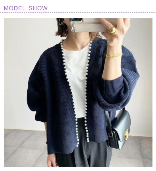 | 上品な着こなしが決まるパールカーディガン。 トレンドのバルーンスリーブで仕上げました。 大粒のパールを贅沢にあしらい主役になるニットカーデ。 シンプルコーデに一点投入で一気に華やかさをプラスしてくれる一枚です。 | |