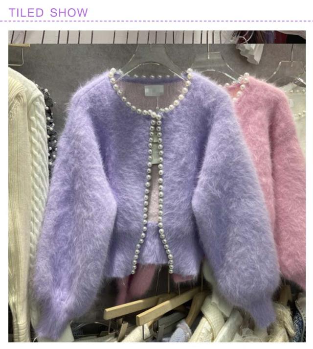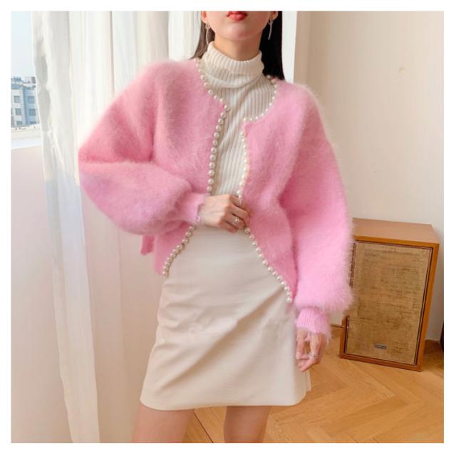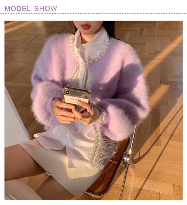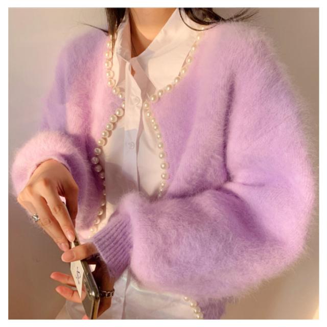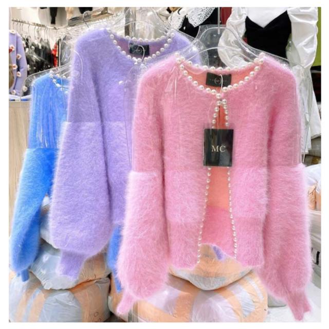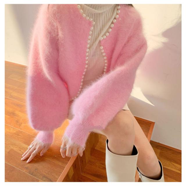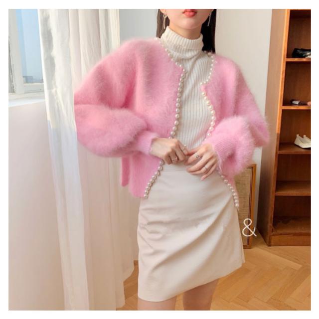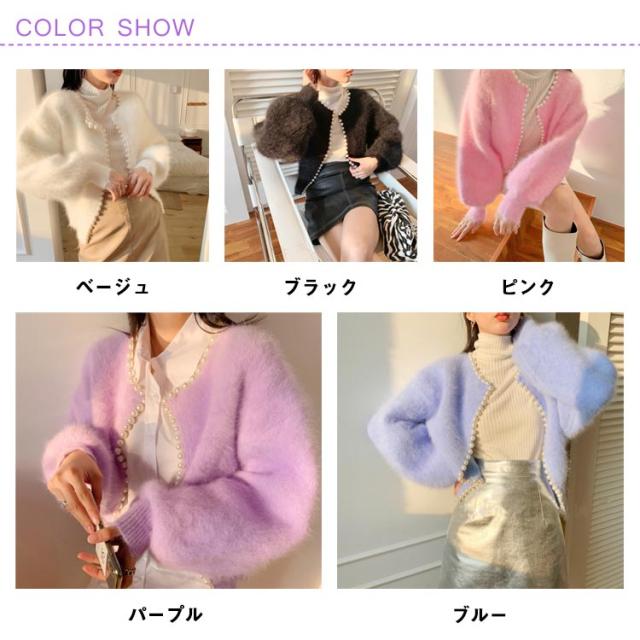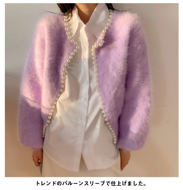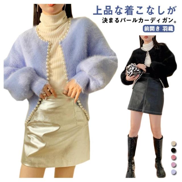 パールラインニットカーディガン ニットカーディガン レディース モコモコ ふわふわ リブニット セーター羽織り 羽織 アウター 体型カバー ニット 前開き 春 秋 アウター シンプル カジュアル 長袖 無地 エレガント