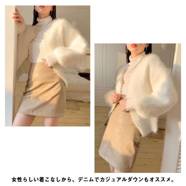 | 上品な着こなしが決まるパールカーディガン。 トレンドのバルーンスリーブで仕上げました。 大粒のパールを贅沢にあしらい主役になるニットカーデ。 女性らしい着こなしから、デニムでカジュアルダウンもオススメ。 短めの丈感にし、ワンピースに合わせやすく、重心が上がるので脚長効果にも◎ | |