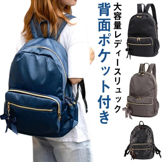 リュック レディース 背面ポケット付き a4 大容量 A4サイズ収納可能 防水リュック 防水 リュックサック ナイロン 軽量 おしゃれ 通勤 通学 マザーズリュック マザーズバッグ