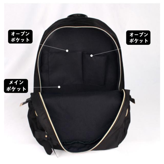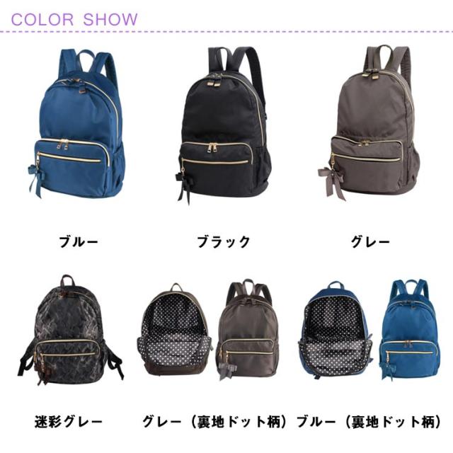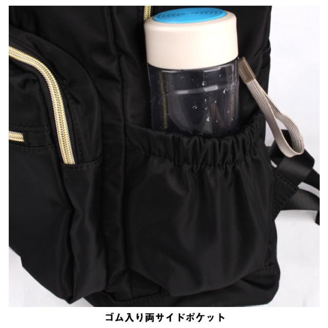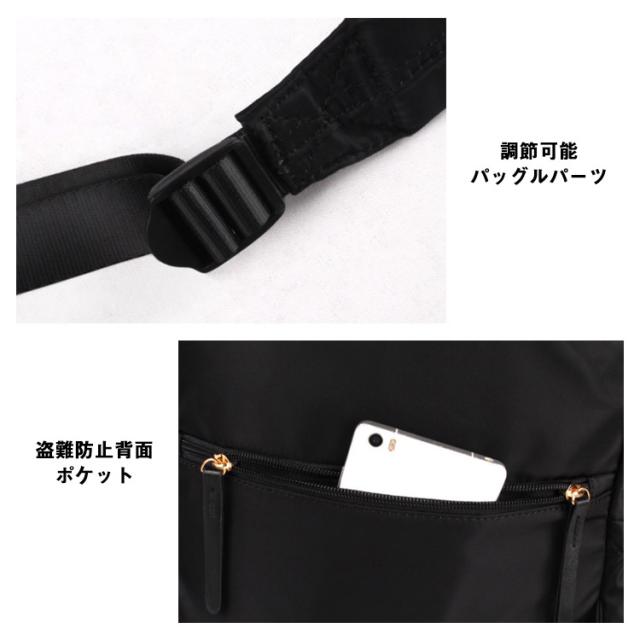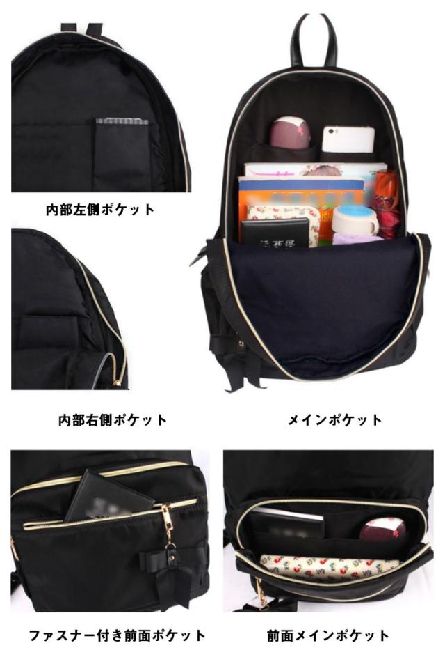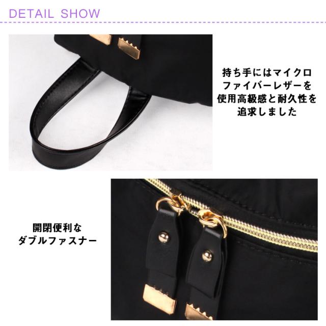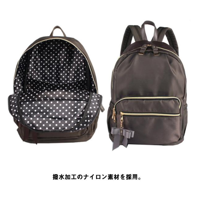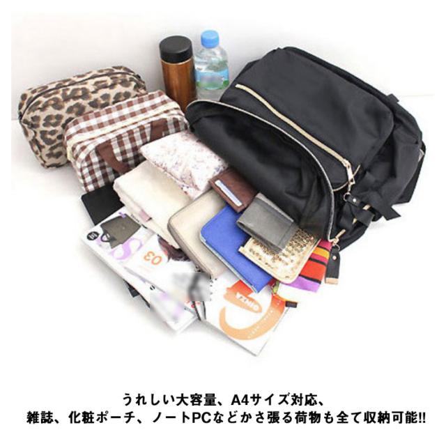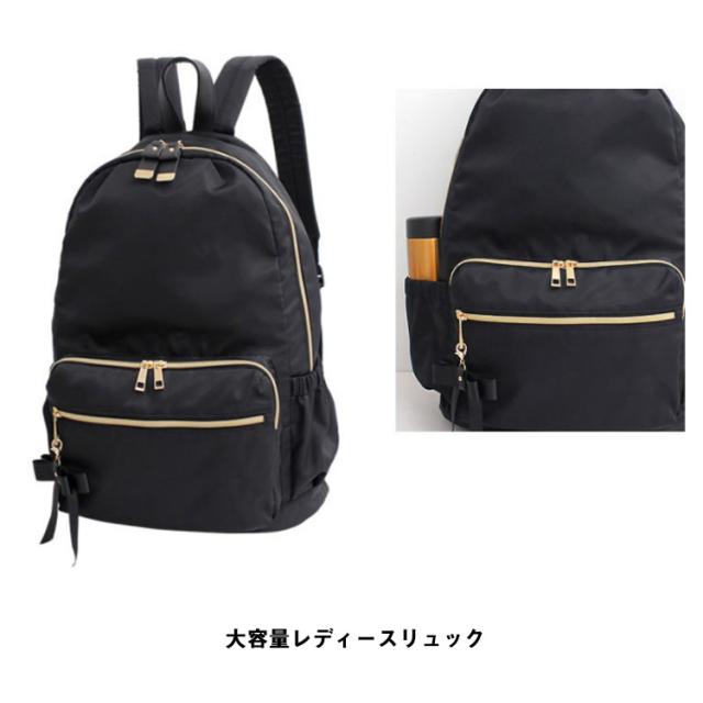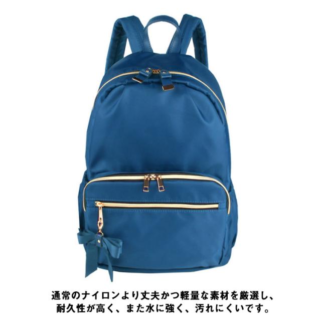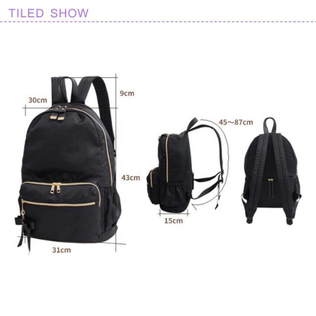 | 大容量レディースリュック 撥水加工のナイロン素材を採用。 通常のナイロンより丈夫かつ軽量な素材を厳選し、耐久性が高く、また水に強く、汚れにくいです。 | |