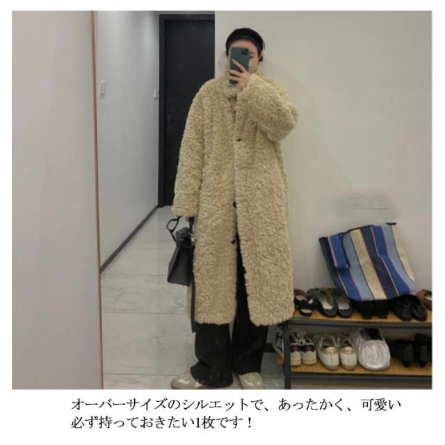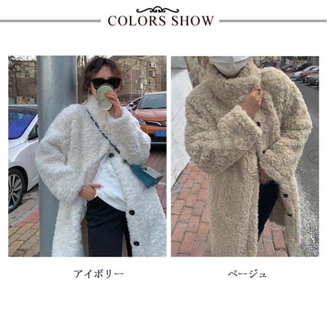 ボアロングコート ボアコート レディース スタンドカラーコート ブルゾン モコモコ アウター 冬 ロングコート 冬 秋冬 もこもこ 大人 カジュアル コート 防寒 送料無料 秋冬服 暖かい 体型カバー ボリューム 50代 40代 30代 20代 きれいめ ドレス 結婚式 通勤