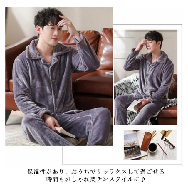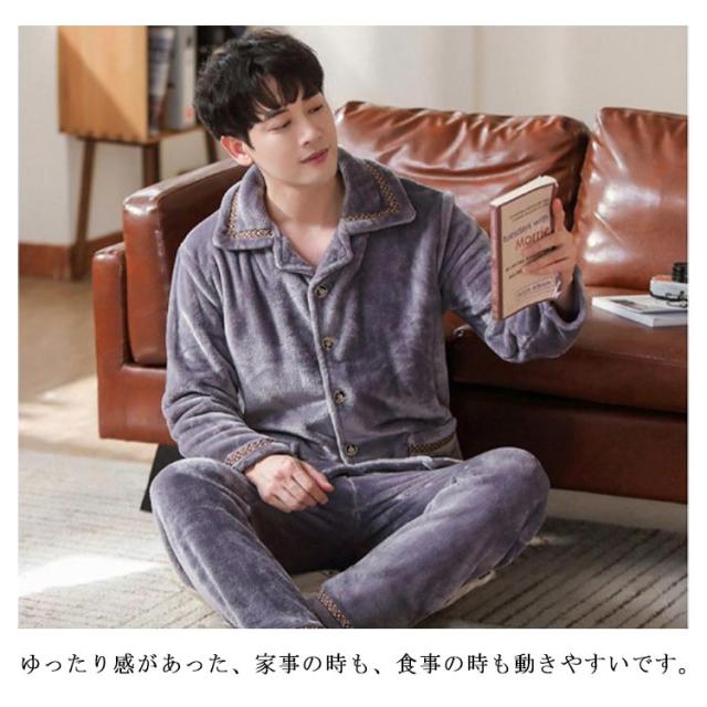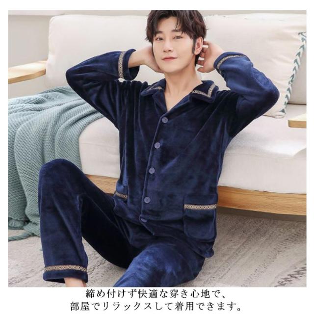 ルームウェア メンズ 秋冬 長袖 厚手 上下セット パジャマ 暖かい 防寒 部屋着 もこもこ ナイトウェア 大きいサイズ クリスマス プレゼント 着る毛布 あったか 洗える 送料無料