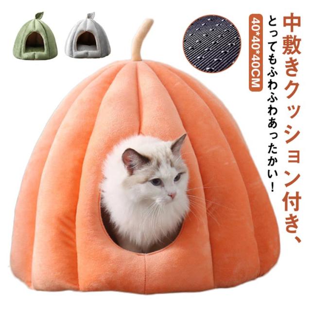 ペットベッド 猫 ペット ベッド ドームハウス ドーム型 ベッド ドーム ハウス カボチャ ペットテント クッション付き ペット用寝袋 ふかふか モコモコ 犬猫 兼用 保温防寒 洗える 滑り止め 半密閉式 あったか ぐっすり眠れる 休憩所 寝床