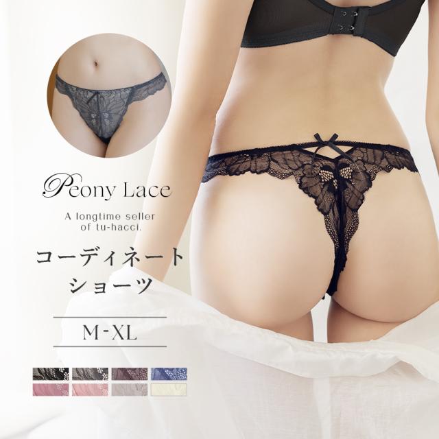 tu-hacci Sexy Shorts Collection Tバックショーツ単品 凛と咲き誇る芍薬をモチーフにしたストレッチレースをたっぷりと。 全体を通して華やかな透け感を楽しめる一着。 バックスタイルはTバックデザインにリボンでアクセントをプラス。 ボトムにラインが響きにくいのもうれしいポイント。 ≫ ギフトラッピングはこちら ≪ |