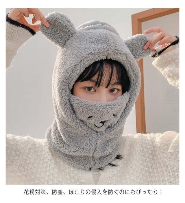 ボア 帽子 防寒 レディース ネックウォーマー 秋冬 送料無料 耳付き 目出し帽 もこもこ 防寒マスク 防風 耳当て付き 保温 暖かい 小顔効果 洗える 通勤 通学 プレゼント ギフト
