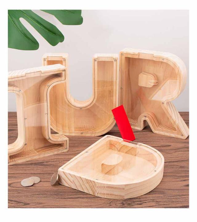 クリア貯金箱 木質 ナチュラル 北欧 インテリア おしゃれ 字母貯金箱 かわいい 雑貨 置き物 小銭入れ 小銭貯金 硬貨 お金 お札 コインバンク コイン入れ シンプル お誕生日 クリスマス ギフト プレゼント 送料無料