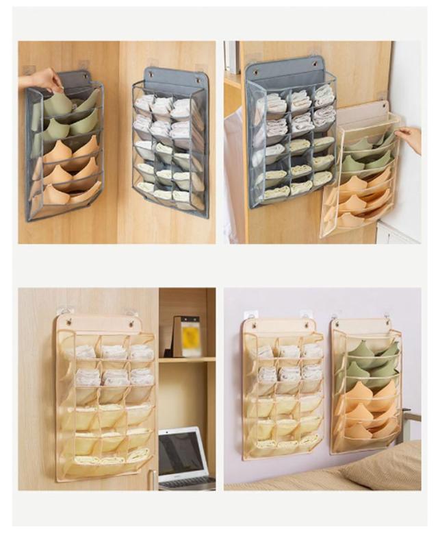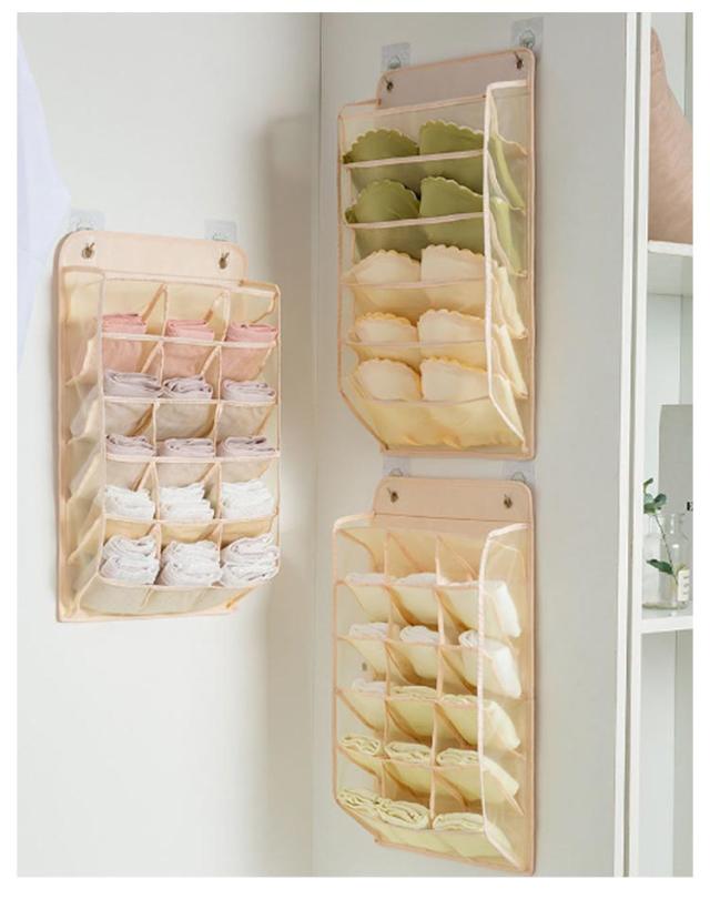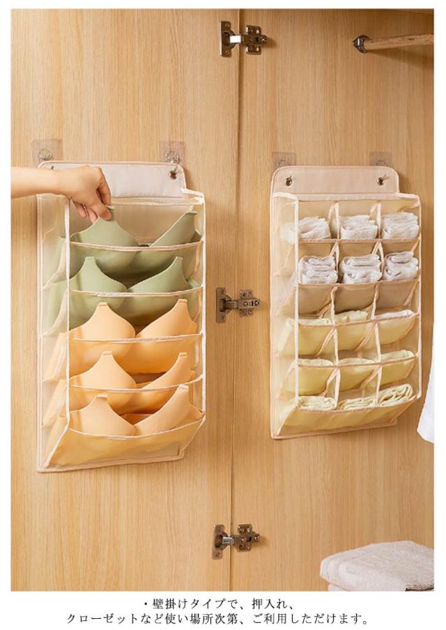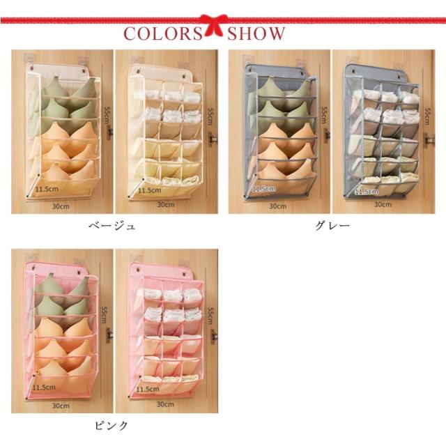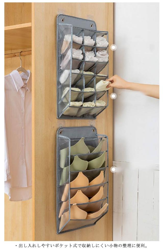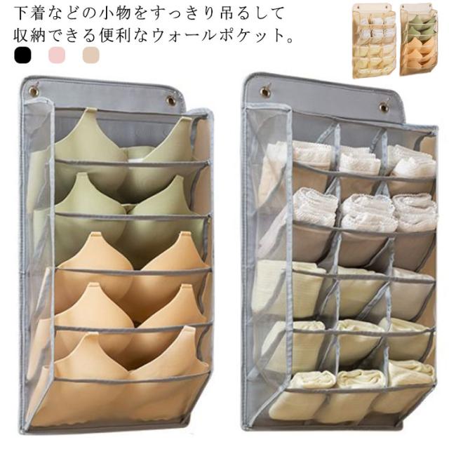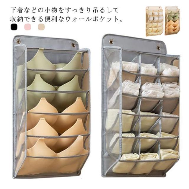 ウォールポケット ブラ 下着収納 靴下収納 15ポケット+5ポケット 2点セット クローゼット 収納 壁掛け収納 ケース 吊り下げ収納 仕分け収納 多機能 通気性 省スペース 収納用品 衣類収納 洗える 無地 全3色