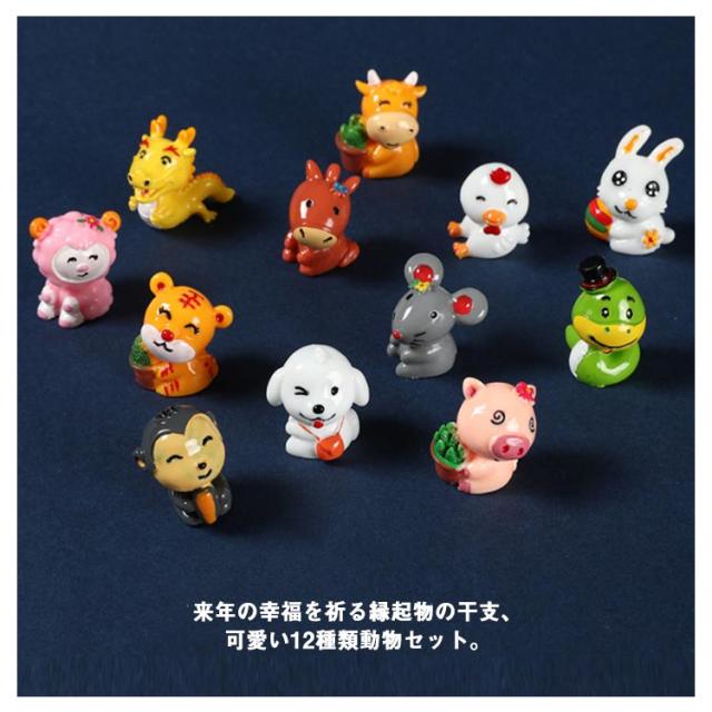 十二支 干支 置物 卯 兎 十二支飾り 縁起物 玄関 車内 飾り 12種類 動物 年末 新年 正月 置物 セット インテリア 正月飾り 小型 ミニ 2023 毎年使える プレゼント ギフト 虎 龍 蛇 馬 羊 申 鶏 犬 豚 鼠 牛