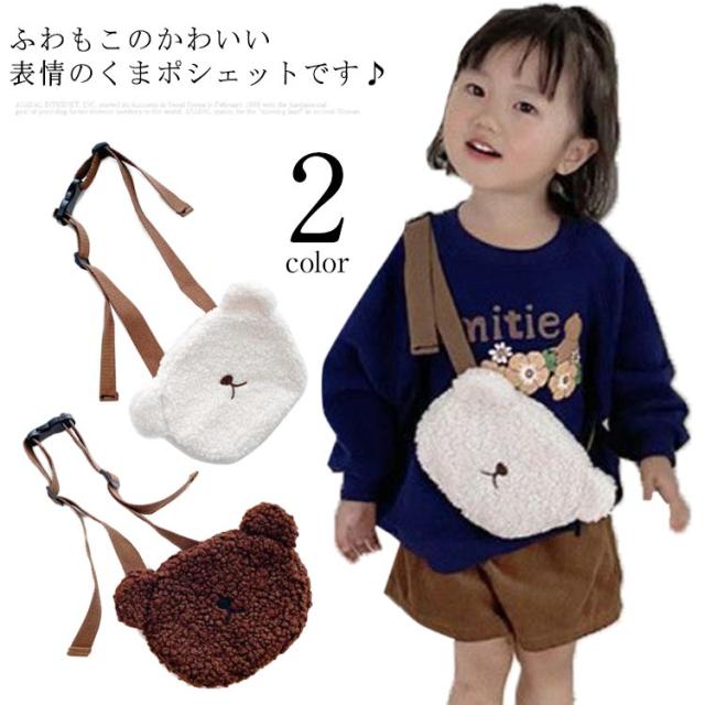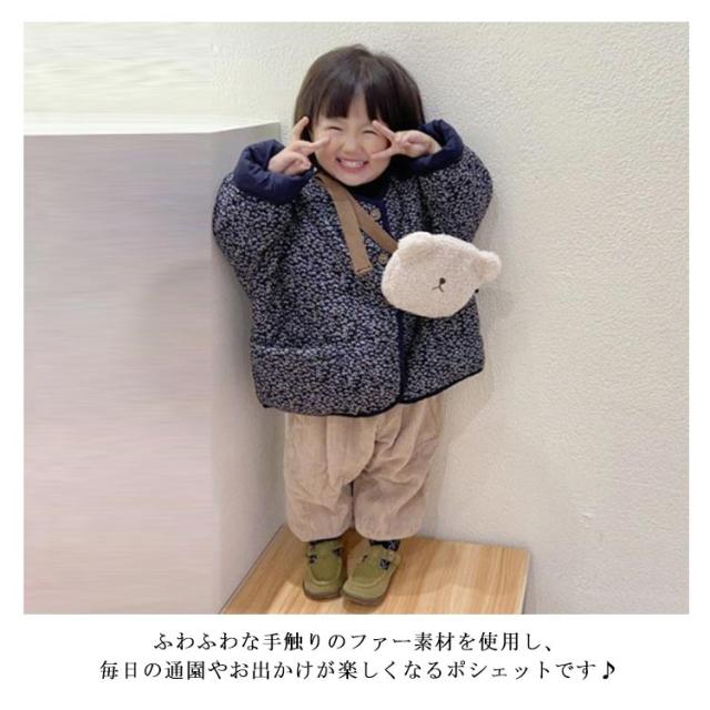 送料無料 ボアポシェット キッズ 女の子 もこもこ クマ クマポシェット アニマル 動物 ポシェット ポーチ バッグ ハンカチ ティッシュ マスク入れ 小物収納 おさいふ ななめがけ 財布 お出かけ おつかい 買い物 かばん
