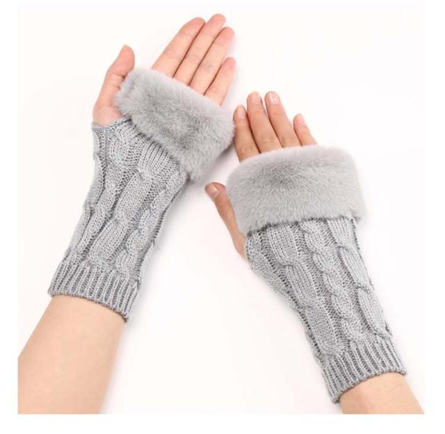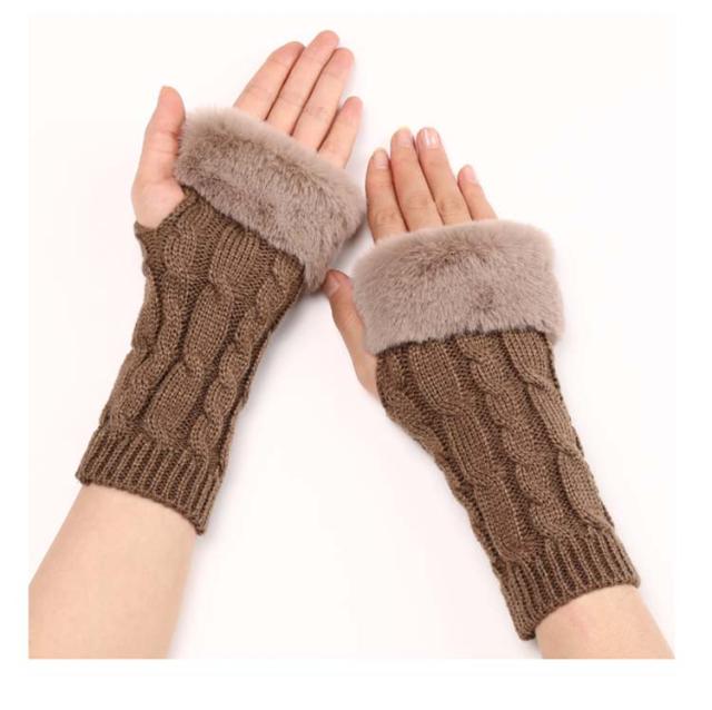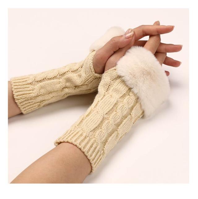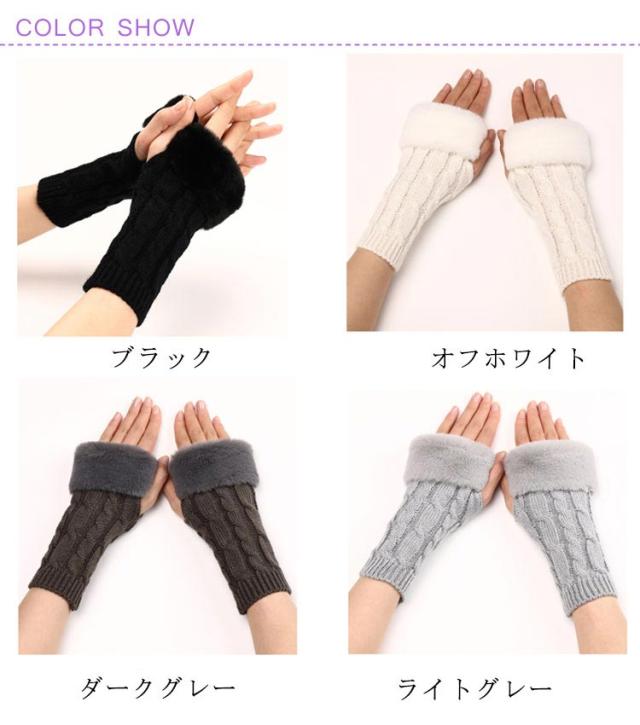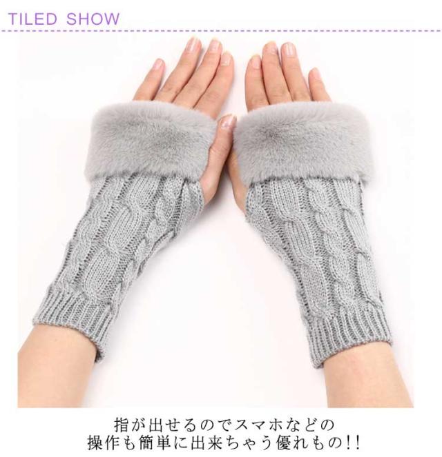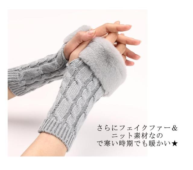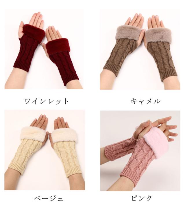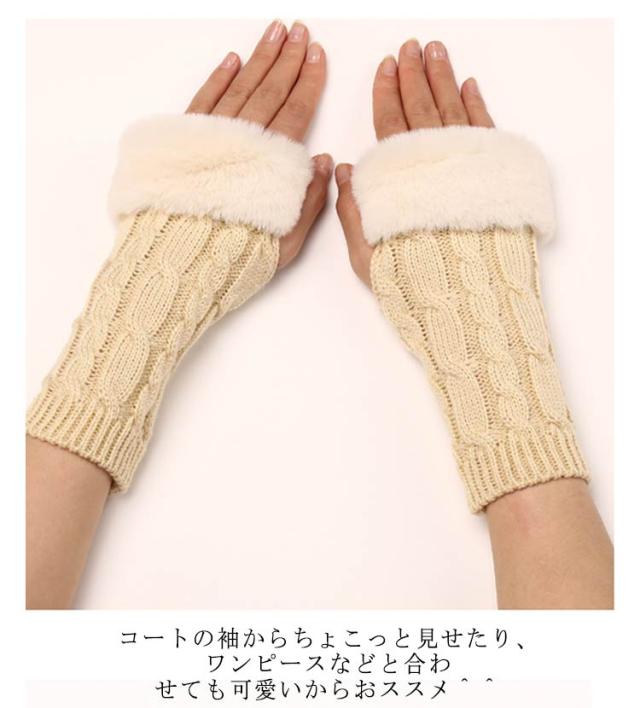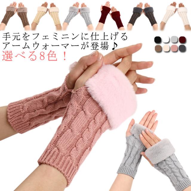 選べる8色!アームウォーマー ファー レディース 女性用 冬 ニット あったか フェイクファー付き 手袋 ケーブル編み 指なし 指穴 アームカバー ロング かわいい 防寒 保温 お洒落 おしゃれ あたたかい 手首